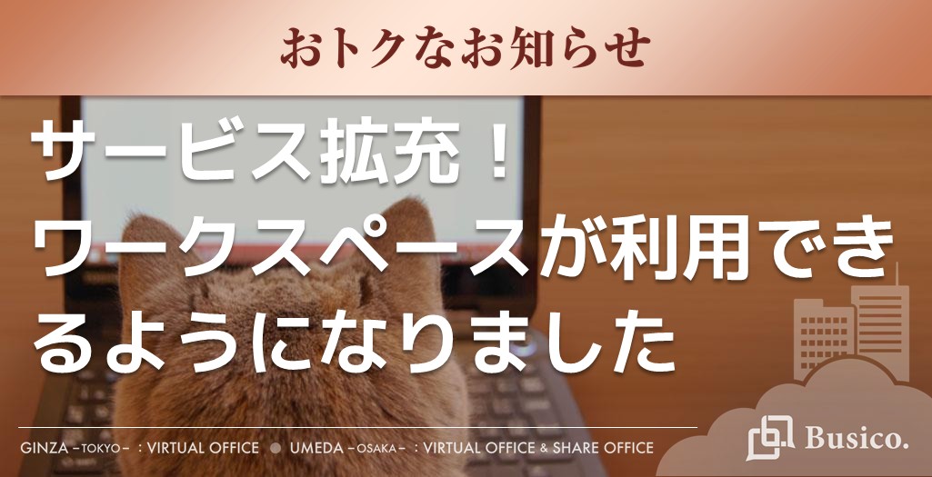 この度、Busico.ではバーチャルオフィス会員も梅田のワークスペースを